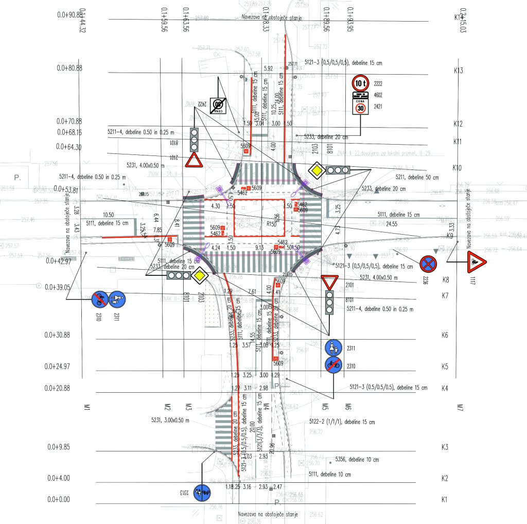 Predvidena je rekonstrukcija križišča in več individualnih priključkov. Skladno s projektno nalogo je potrebno v sklopu gradbeno – prometnega dela projekta PZI ureditve križišča izdelati tudi izračun krmilnih programov semaforskih naprav.