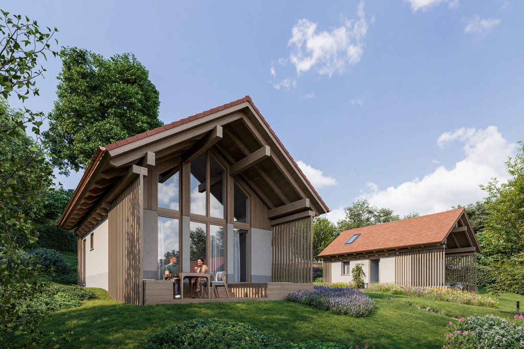 Trajnostna gradnja: Objekti se ponašajo z leseno suhomontažno gradnjo in naravno izolacijo iz lesenih vlaken, opremljeni pa so s kakovostnim lesenim stavbnim pohištvom s troslojno zasteklitvijo.
